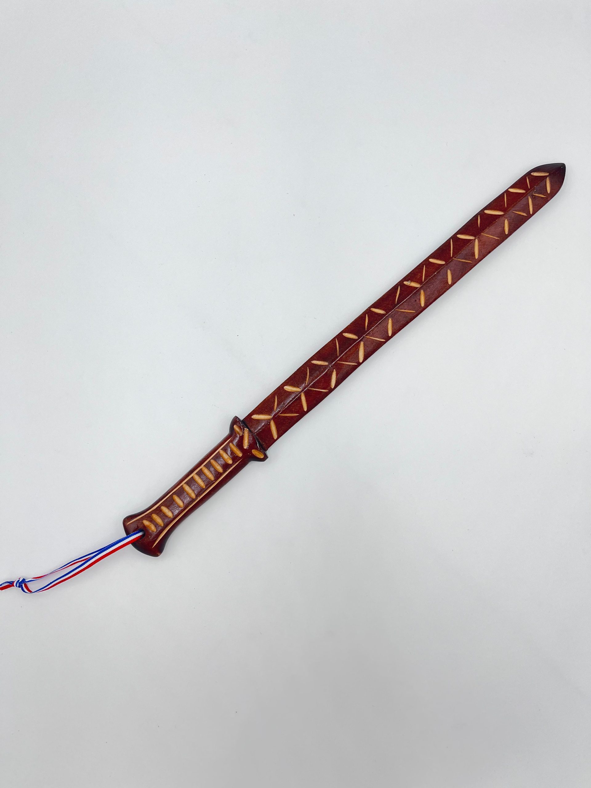 Elegantan drveni mač ručne izrade savršen je kao originalan poklon ili dekorativni dodatak dječjoj sobi. Izrađen od kvalitetnog drva i pažljivo oblikovan, nudi sigurnu i dugotrajnu igru. Potiče kreativnu igru, razvija maštu, koordinaciju i osjećaj za strategiju, a zahvaljujući čvrstoj izradi može postati omiljeni saveznik u i fantastičnim pričama. Idealna je igračka za igru, ali i kao originalan poklon koji spaja zabavu i edukaciju.