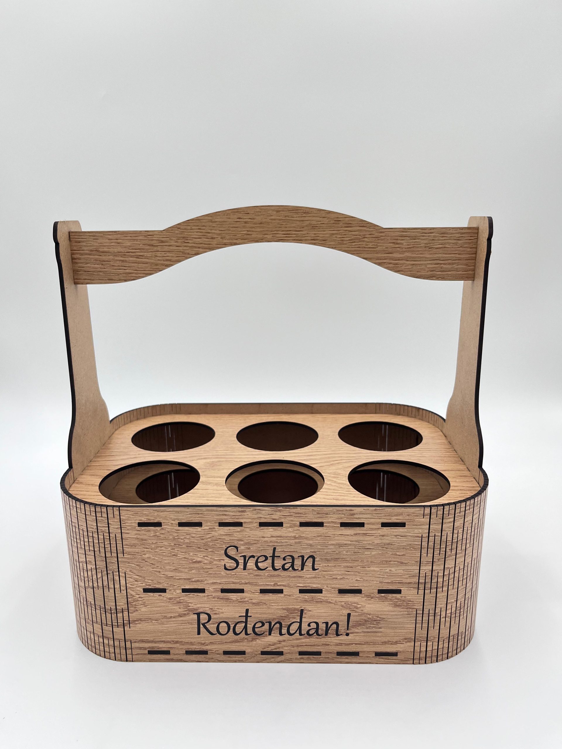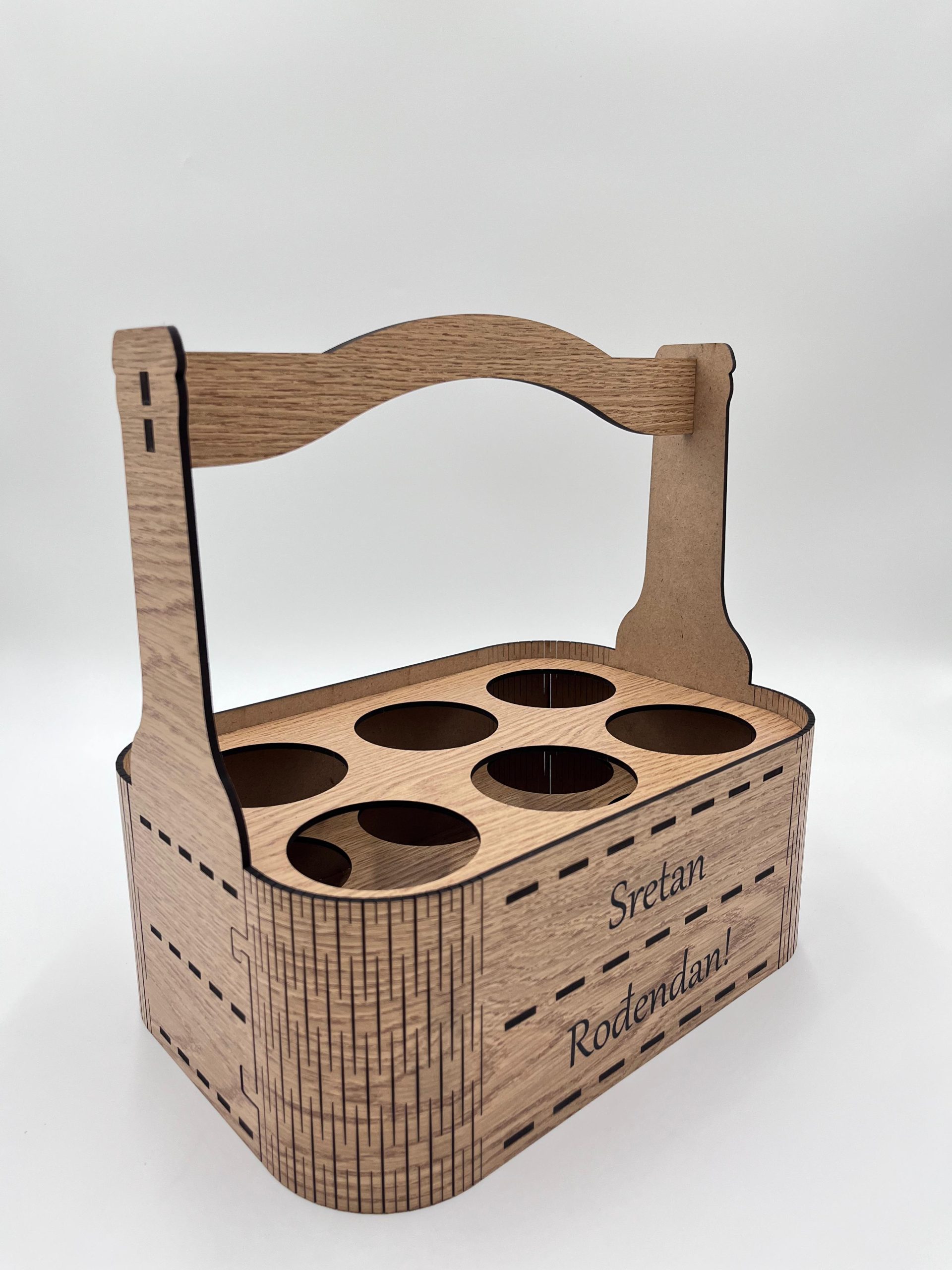 Ova elegantna gajbica za limenke pruža savršen način za organizaciju i transport vaših omiljenih napitaka. Na prednjoj strani možete postaviti tekst po želji, što ovu gajbicu čini savršenim personaliziranim poklonom za različite prigode. Kompaktan i praktičan dizajn omogućava lakše nošenje, a jednostavan i prirodan izgled  se savršeno uklapa u svaki ambijent.