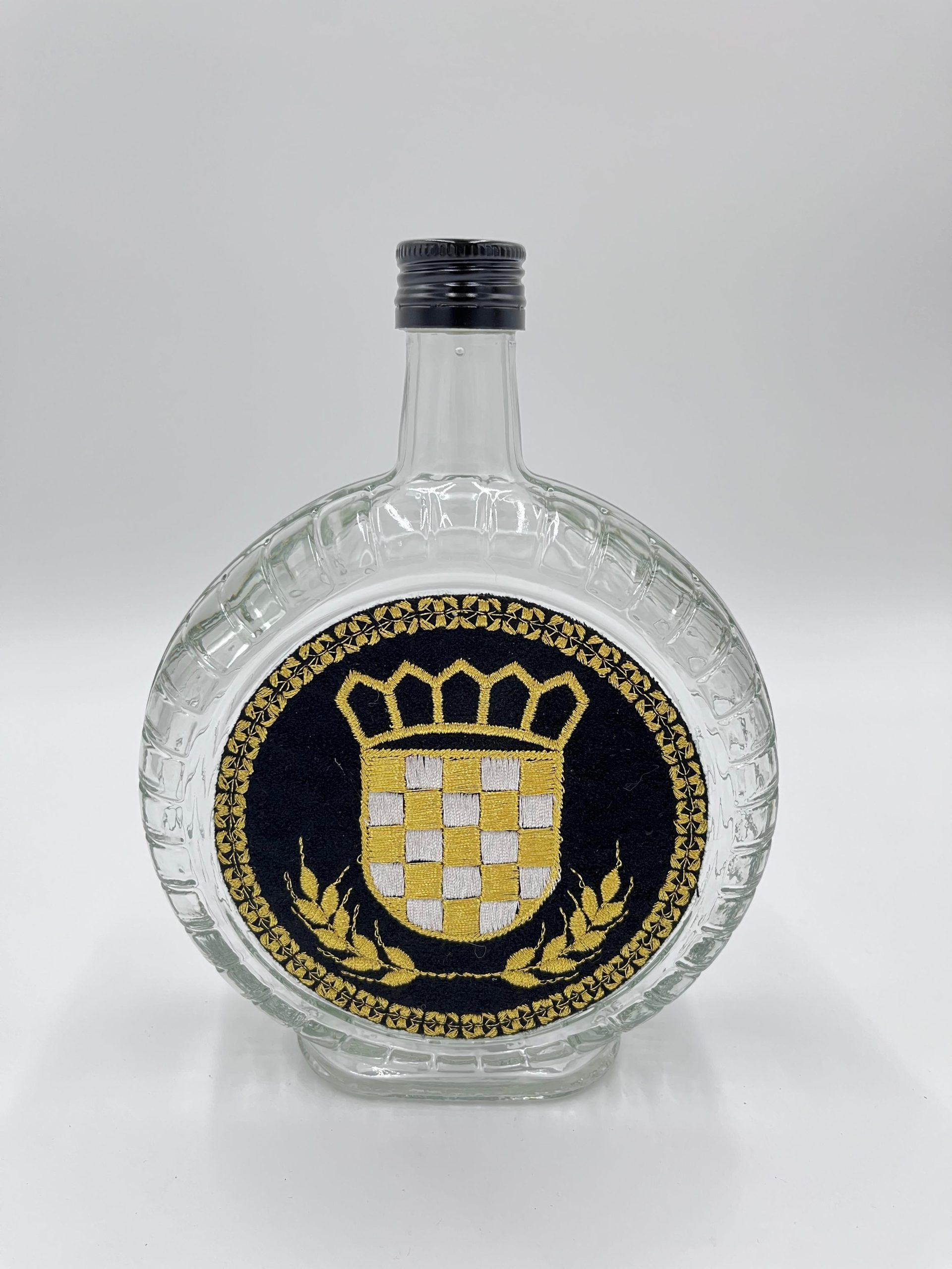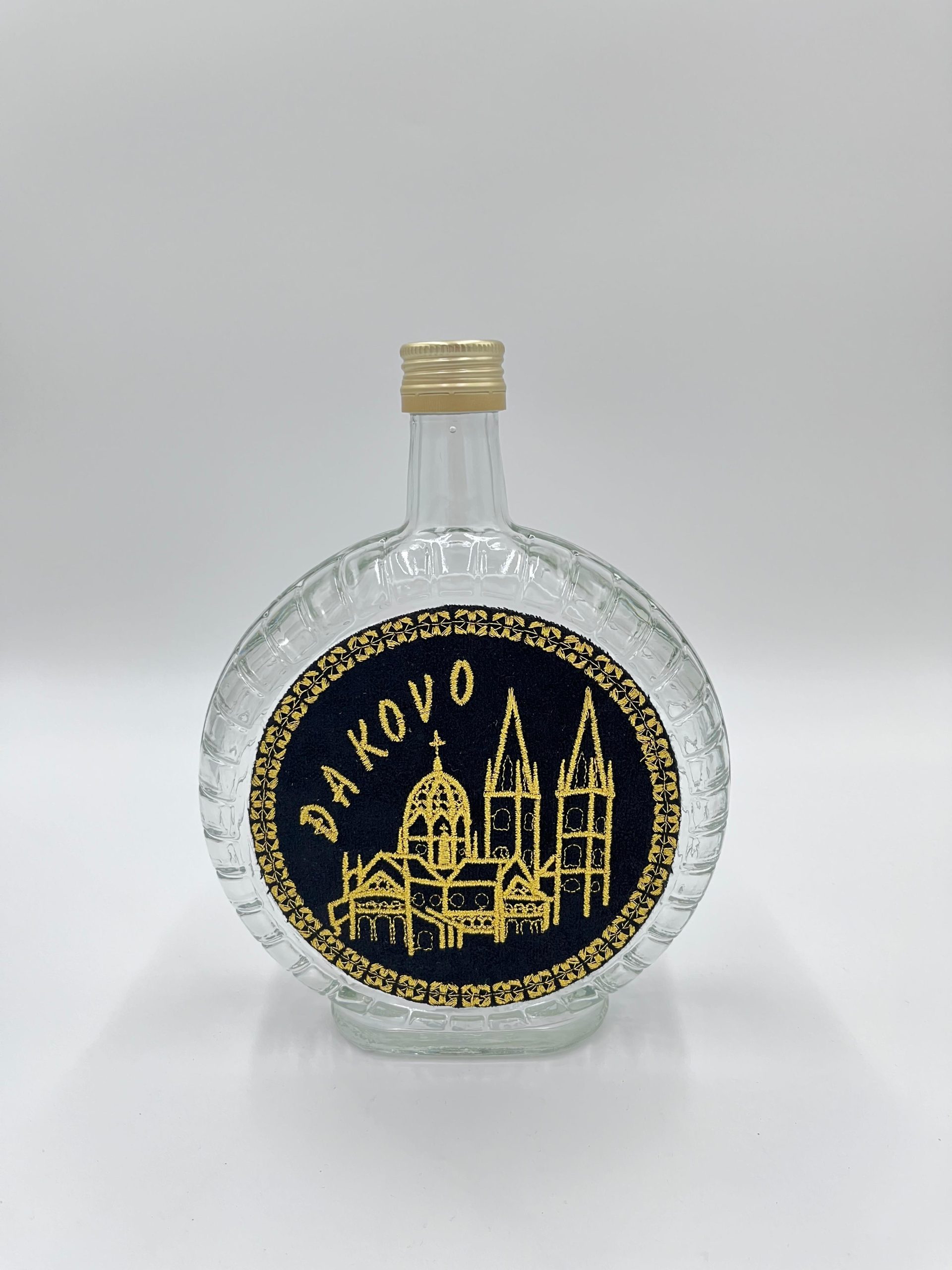 Elegantna staklena čutura sa zlatovezom savršen je spoj funkcionalnosti i sofisticiranog dizajna. Svaka čutura dolazi s različitim motivima – od tradicionalnih motiva Đakova i Slavonije do hrvatskih simbola. Uz opciju personalizacije, možete dodati i svoj željeni motiv ili tekst, međutim, imajte na umu da će takve izmjene biti dodatno naplaćene. Izrađena od kvalitetnog stakla, zadržava svježinu pića, dok zlatovez dodaje luksuzan i dekorativan detalj. Savršena je za posluživanje vode, soka ili vina, ali i kao jedinstveni poklon koji odiše pažnjom prema detaljima i tradiciji.